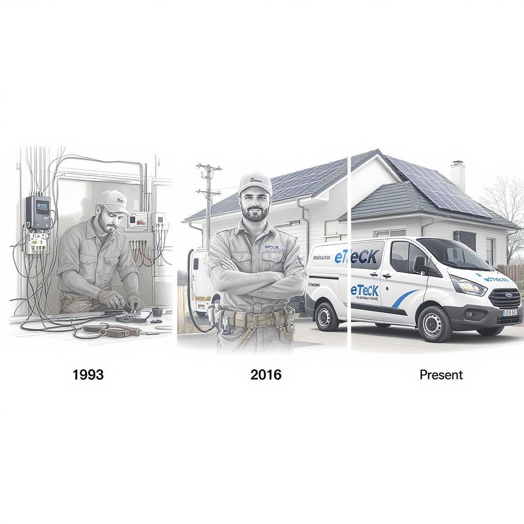 Heute steht eTeCK für moderne Lösungen rund um Elektroinstallation, Stromversorgung und smarte Gebäudetechnik. Unser Team verbindet jahrzehntelange Praxiserfahrung mit innovativer Technik – von der klassischen Hausinstallation bis hin zur anspruchsvollen Elektrotechnik in Industrieanlagen.